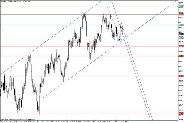 Пара EURUSD оттолкнувшись от уровня 1.3699, продолжает снижение в рамках восходящего тренда. Цена приближается к уровню 1.3566, после пробоя этого уровня цена устремиться к уровням 1.3480 либо 1.3380.