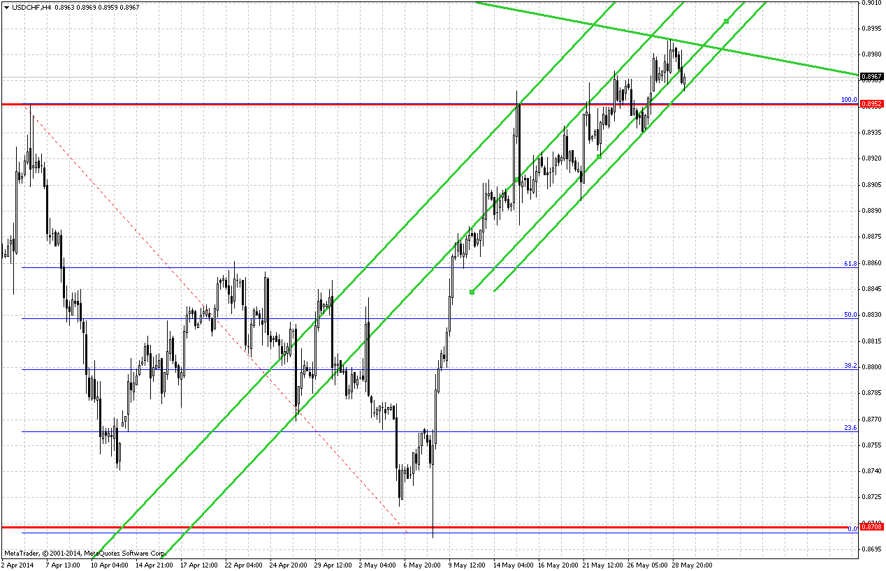 Пара USDCHF демонстрировала рост, ждем снижение после такого длительного ослабленного роста. После пробоя уровня 0.8952 можно продавать, в этом случае потенциал снижения будет до ближайшего уровня Фибоначчи.