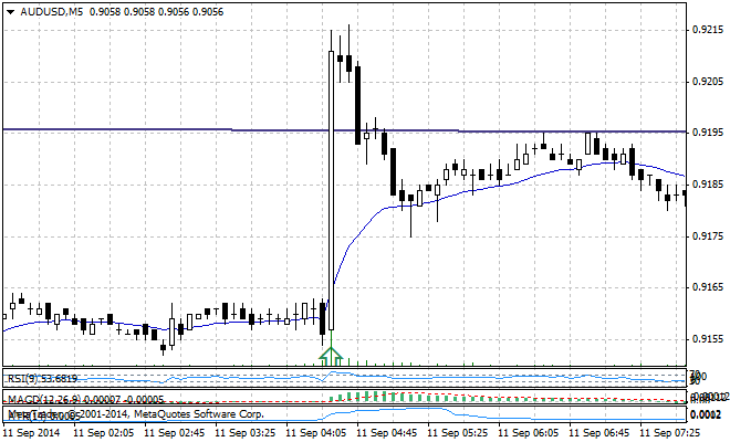 - Занятость в Австралии (11.09) – лучше ожиданий, рост AUD/USDна 55 пунктов за 5 минут.