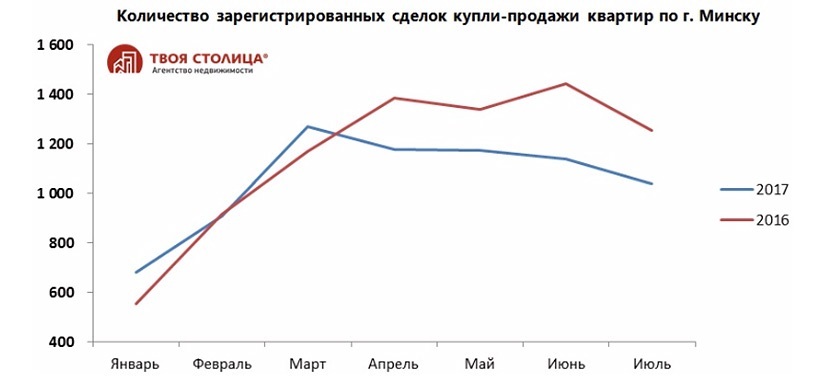 Число проданных в Минске за январь-июль 2017-го квартир на «вторичке» по сравнению с 2016-м снизилось на 7 процентов. Хотя начало этого года выглядело оптимистично.
