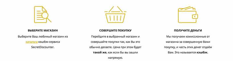 Принципиальных отличий того же SecretDiscounter от банковских карточек два: процент возврата (в кэшбэк-сервисах можно вернуть до 40% с каждой покупки, в то время как по банковским карточкам максимум 1-1,5%) и любая форма оплаты (в случае с кэшбэк-сайтом вы не привязаны к конкретной форме оплаты: платите карточкой, наличными, безналом, электронными деньгами).