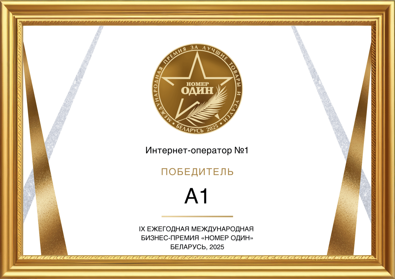 А1 стал победителем ежегодной премии «Номер один» в номинации «Интернет-оператор №1». Своим достижением компания подтвердила статус одного из ведущих провайдеров фиксированной связи в Беларуси, которому доверяют сотни тысяч абонентов домашнего интернета по всей стране.