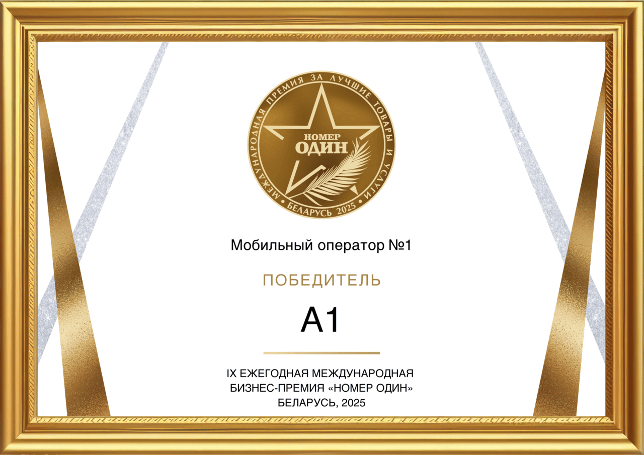 А1 стал безоговорочным лидером по итогам народного голосования – и получил звание «Мобильный оператор № 1» в Беларуси на IX ежегодной премии «Номер один»! Награда – это признание первенства компании в области развития современных цифровых сервисов мобильной связи и высокого качества услуг со стороны потребителей.