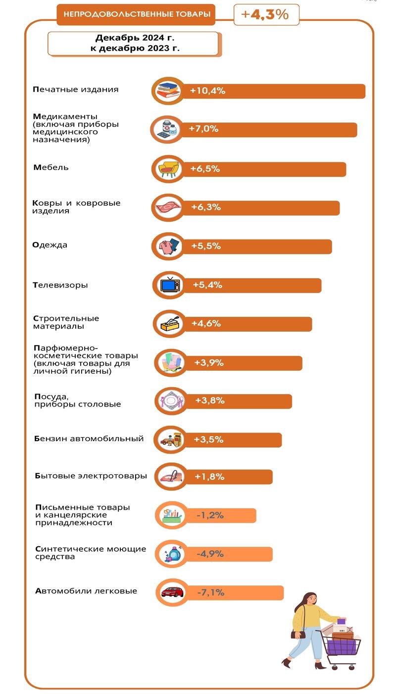 Из непродовольственных товаров сильнее всего подорожали печатные издания – на 10,4%, а также медикаменты (включая приборы медицинского назначения) – на 7%.