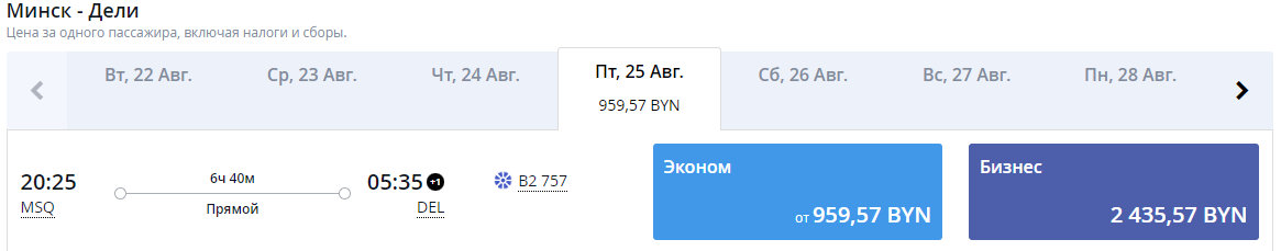 На данный момент без скидки на сайте можно найти билеты от 959,5 рублей на прямой рейс Минск – Дели.