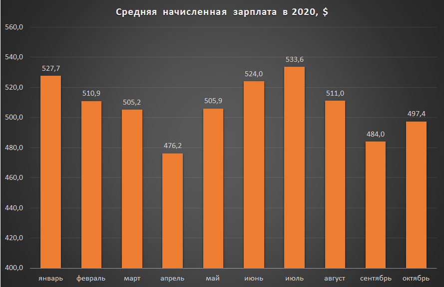 В долларовом выражении прирост средней зарплаты был немногим более 13 долларов. В октябре заплата белорусов в среднем составила 497,4 доллара (в сентябре 2020 года она была 484 доллара).