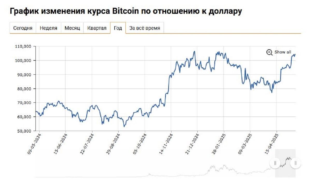 В начале 2025 года, после небольшой коррекции, биткоин снова стал расти и в мае стабильно закрепился выше психологически важной отметки в $100 000.