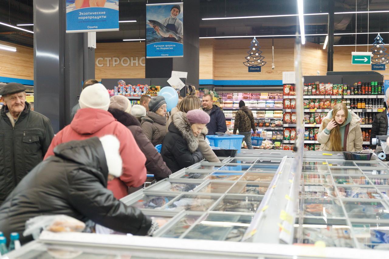 Новый супермаркет «Санта» работает с 8 до 23 часов на улице Нововиленской, 27. Покупателей обслуживают 6 обычных касс и столько же – терминалов самообслуживания.