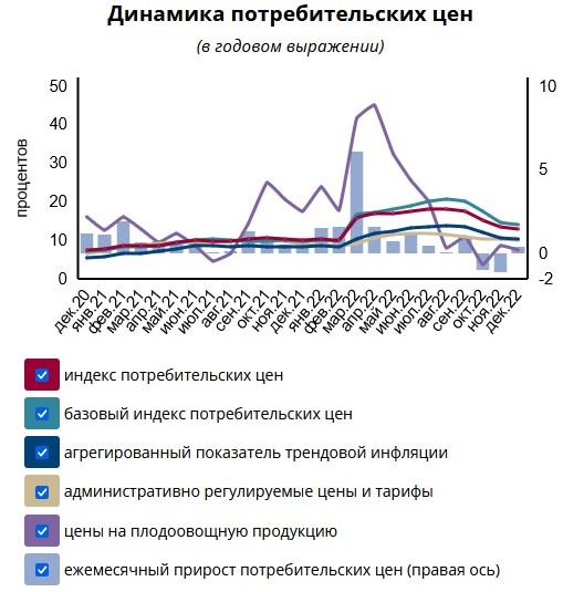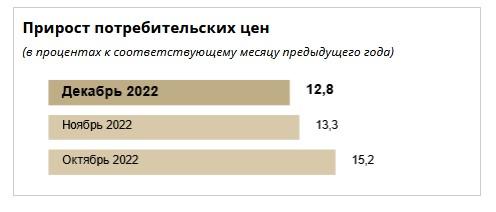 В Нацбанке отметили, что в декабре 2022 года годовой прирост потребительских цен составил 12,8% (для сравнения – в ноябре и октябре было 13,3% и 15,2% соответственно).