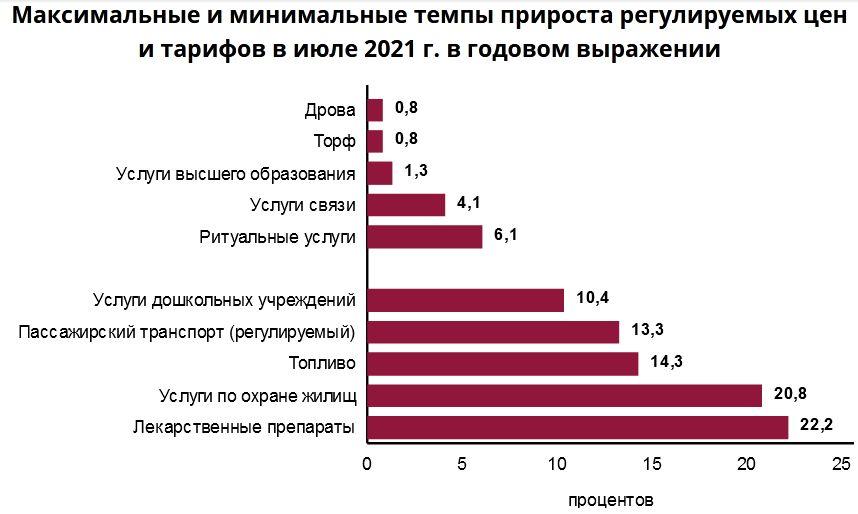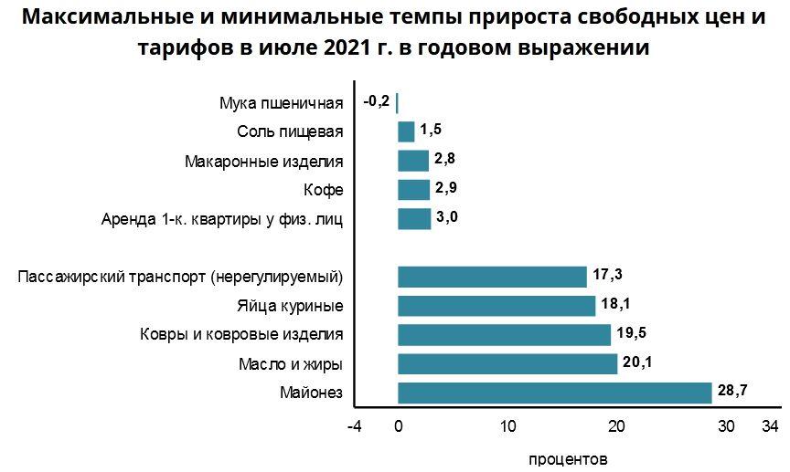 Данные о максимальных и минимальных темпах прироста свободных цен и тарифов в июле в годовом выражении выглядят так: