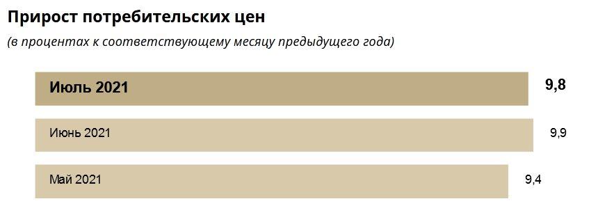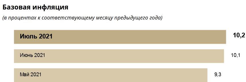 Базовая инфляция в июле текущего года составила 10,2% по отношению к июлю 2020 года.