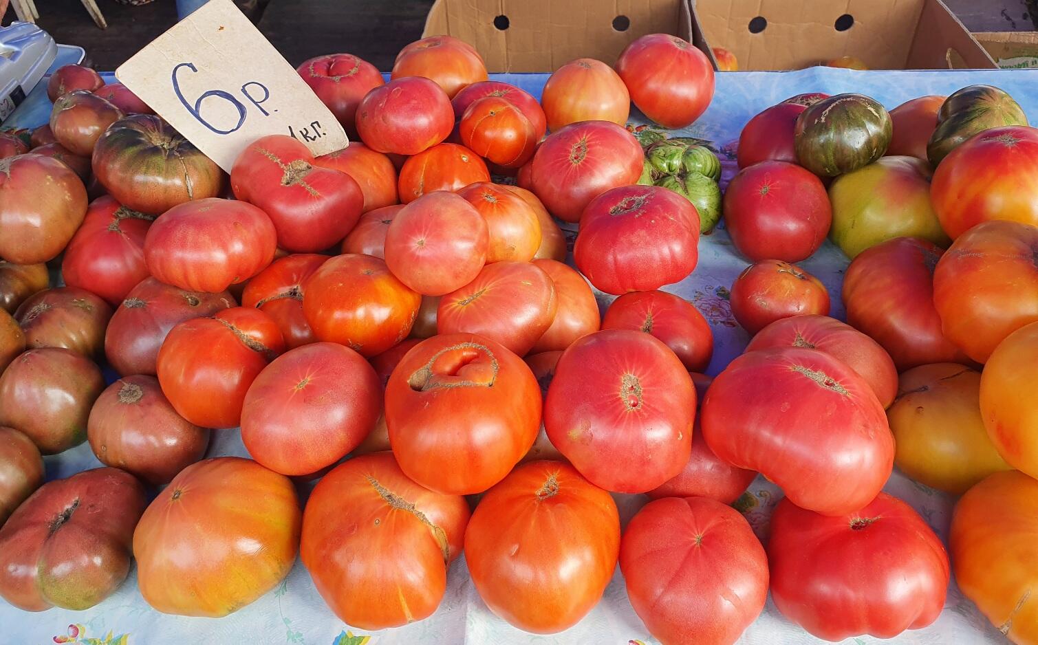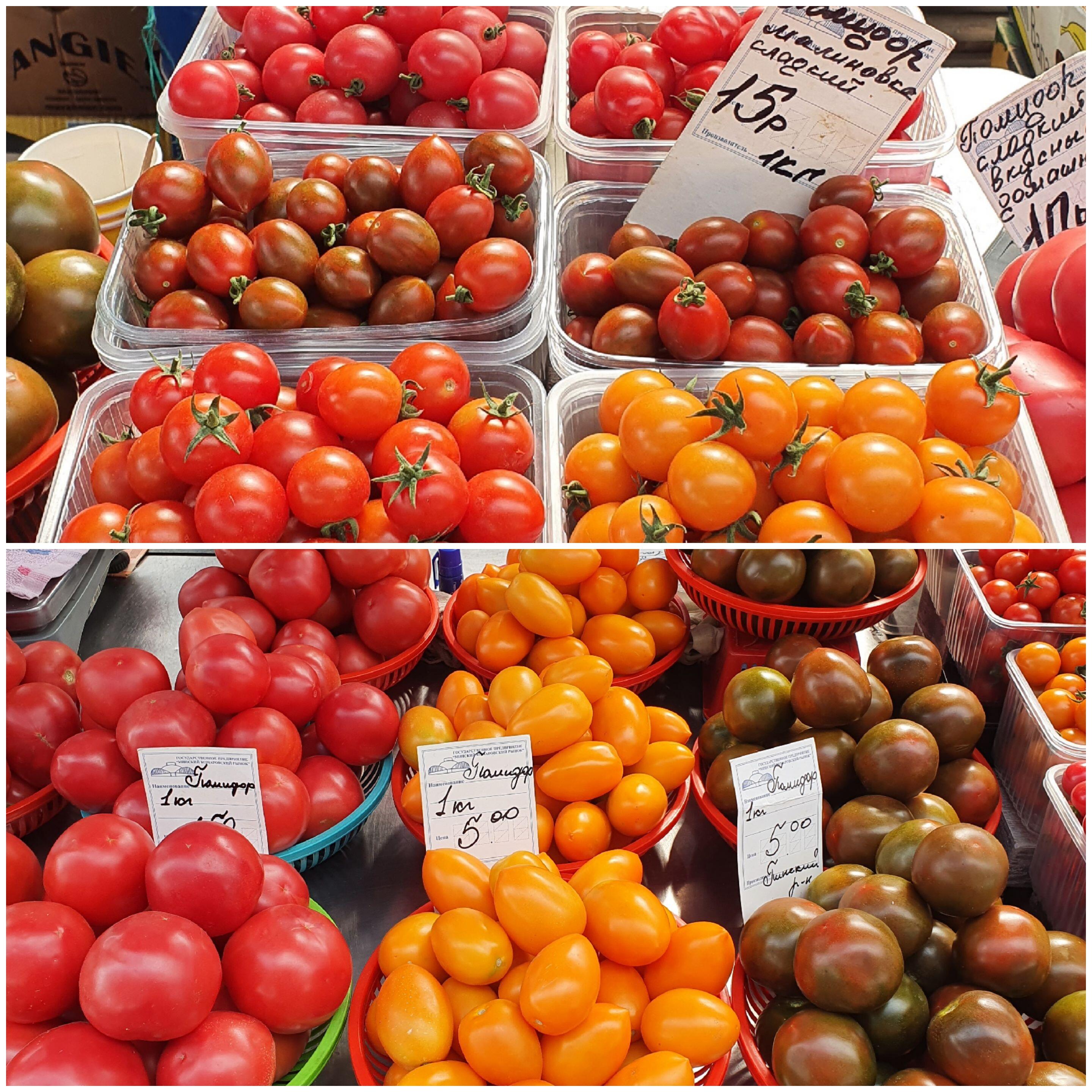 Цены такие: от 3,5 руб. до 10 руб. В одном месте нашли помидоры даже за 3 руб. Самые дорогие, не считая черри, это «Малиновый рай». Он продается по цене 10 руб. за 1 кг.