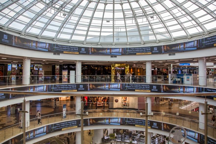 По пути между магазинами и этажами замечаешь, что здесь слишком тихо для торгового центра. Тебя не раздражает постоянная толпа, громкая музыка и духота, как это часто бывает в таких местах. За счет огромных размеров здания здесь всегда уютно: даже если это выходной день и людей приходит очень много. Никто друг другу не мешает. Это очень важно, если вы с маленькими детьми (особенно в коляске).