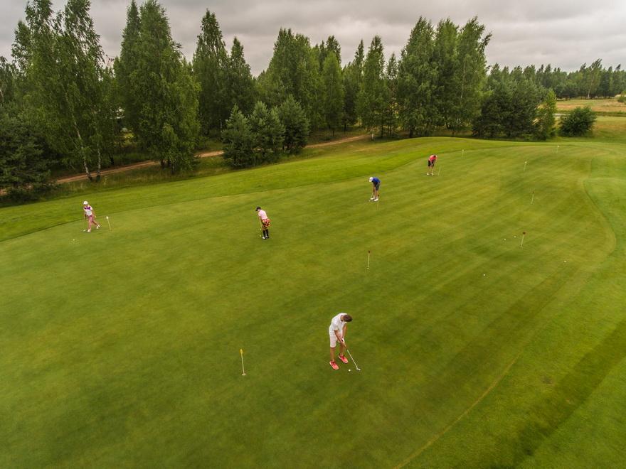 Жители квартала при желании смогут воспользоваться гольф-полями, вид на которые открывается владельцам коттеджей. Застройщик делает акцент на том, что это единственные в Беларуси гольф-поля чемпионского класса.