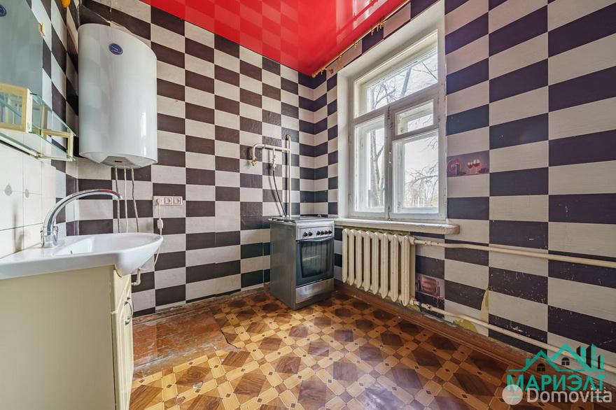 На улице Тимирязева возле проспекта Машерова осталась единственная двухэтажная сталинка, и квартира находится именно там. От дома до метро 7 минут ходьбы. Ремонт в помещении совершенно разный: от ободранных обоев в коридоре до недавно отделанной комнаты. В зависимости от вашего местоположения в квартире, на полу может быть ламинат, линолеум или плитка. Окна в квартире тоже разные: и деревянные и пластиковые.
