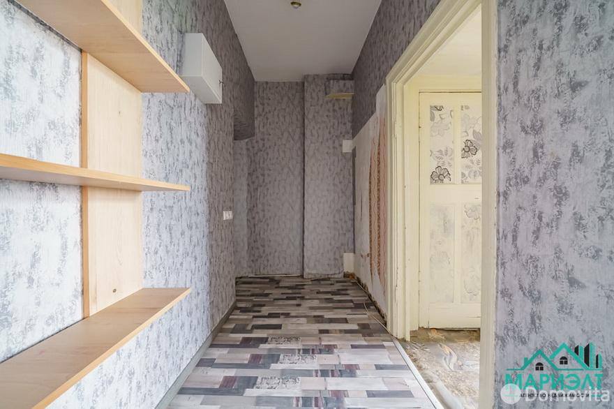 Отсюда до станции метро пройти придется не больше 10 минут. Квартира на 32 квадратных метра находится в кирпичном доме на улице Ольшевского. Здесь застеклен балкон, установлены стеклопакеты и металлические двери. Но общая отделка старая: потрепанный деревянный пол и местами отстающие обои.