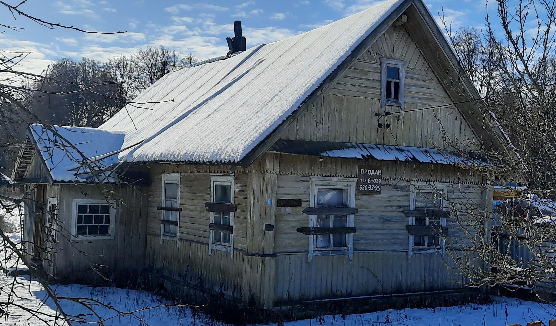 Далее – снова одноэтажный дом из древесины, но уже в деревне Паничи. Неизвестно, в каком году была построена недвижимость, однако износ объекта составляет 60 %. Общая площадь дома – всего 27,5 кв. м, участок – 0,15 га. По данным реестра, на данный момент дом не находится в аварийном или разрушенном состоянии.