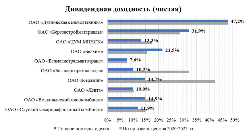 С учетом фактического отсутствия ликвидности потенциальную чистую (за вычетом подоходного налога) дивидендную доходность акций мы предлагаем оценить относительно цены по последней сделке, а также по средневзвешенной цене за 2020-2022 годы.