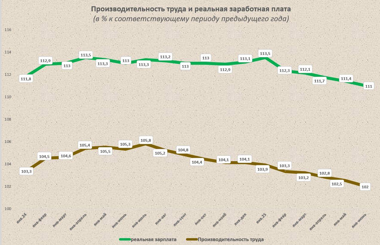 В частности, аналитики банка обращают внимание на то, что реальная зарплата в нашей стране выросла на 7,6 % г/г в июле 2025 года после 9,6 % г/г в июне.