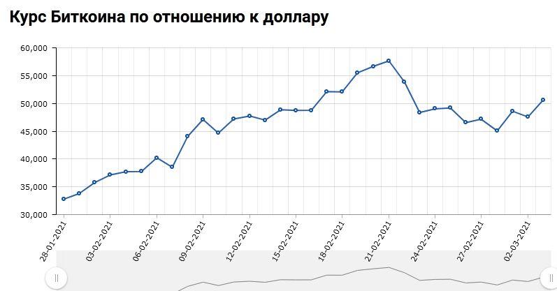 Биткоин после падения пошел в рост и вновь превысил $50 тыс. Популярная криптовалюта за первые три дня этой недели подорожала на $7,7 тыс. В частности, 3 марта, курс биткоина достиг $50,7 тыс., а позже преодолел и отметку $52 тыс. Он растет с 28 февраля, после локального минимума $43 тыс. Напомним, что ранее в феврале биткоин взлетел выше $57 тыс. Когда ждать новых рекордов?