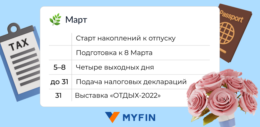 Кстати, в марте обычно у авиакомпаний бывают распродажи билетов, так что эти траты тоже можно внести в план месяца.
