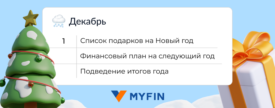 Подведение финансовых итогов года. Просмотреть финансовый план уходящего года и разобраться, что выполнили, а что не удалось и в чем причины. Посмотреть свои расходы в интернет-банке и проанализировать, какие траты были лишними, сколько денег накопили и заработали с помощью инвестиций, вкладов и кэшбэка. Сделать конструктивные выводы и скорректировать финансовый план на следующий год.