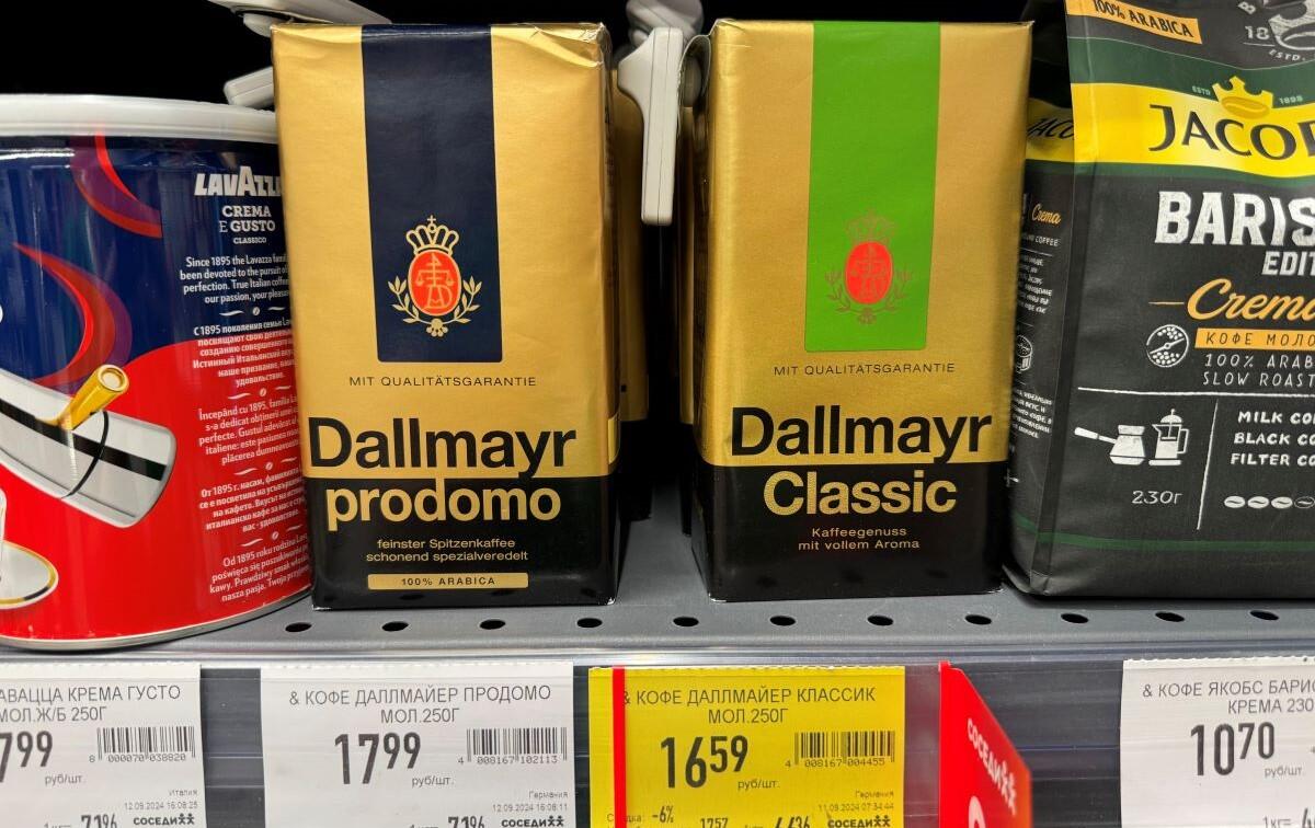 На акции сейчас представлены самые популярные варианты молотого кофе. Dallmayr 250 г – 16,59 руб., Lavazza Oro 250 г в жестяной банке – 21,43 руб. Из бюджетных Maxwell House и Jacobs – меньше 9 рублей.