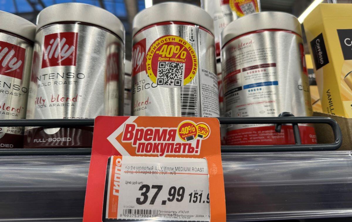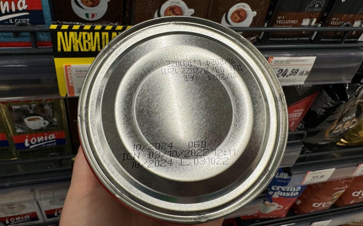 Представлено большое количество сладких порционных кофейных напитков в упаковках по 10 штук. В пересчете на килограмм кофе из пакетика нельзя назвать дешевым, в среднем от 35 до 60 рублей. В жестяных банках продают итальянский Barbera 250 г – 19,99 руб. На большой скидке Illy – 37,99 рубля. На банке указан и срок годности напитка. Выпущен в 2022 году, а выпить желательно до наступления октября.