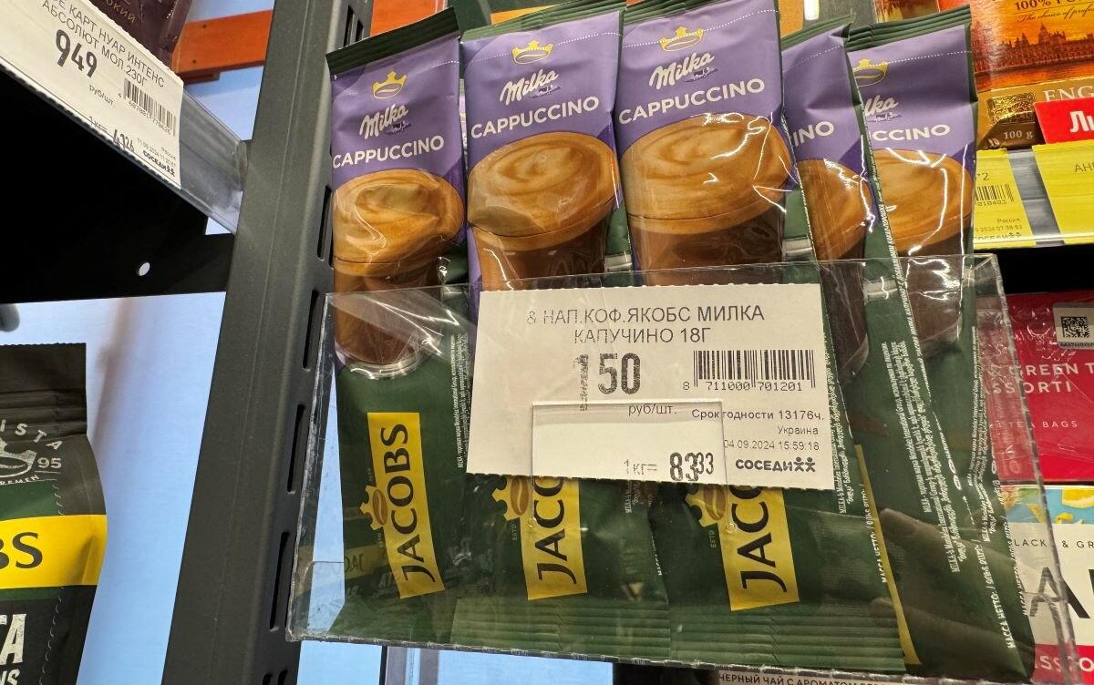 Купить можно и сладкий вариант (Капучино «Милка») поштучно – 1,50 руб., а 1 килограмм – 83,33 рубля.