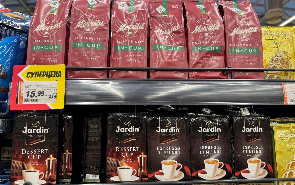 «Гиппо» предлагает самый богатый выбор бодрящего напитка. В лидерах продаж растворимый Nescafe Gold из России. Банка 95 г – 11,99 руб., а кило стоит почти 127 рублей. Классический молотый Dallmayr 250 г – 14,99, стоимость за килограмм всего 59,96 руб. Merrild 250 г – 15,99. Обнаружен самый дорогой вариант Lavazza Oro за 250 г – 22,89 руб. И за «Жокей» тут просят больше – 10,47. Есть со вкусом ирландского ликера – 150 г за 10,47 рубля.