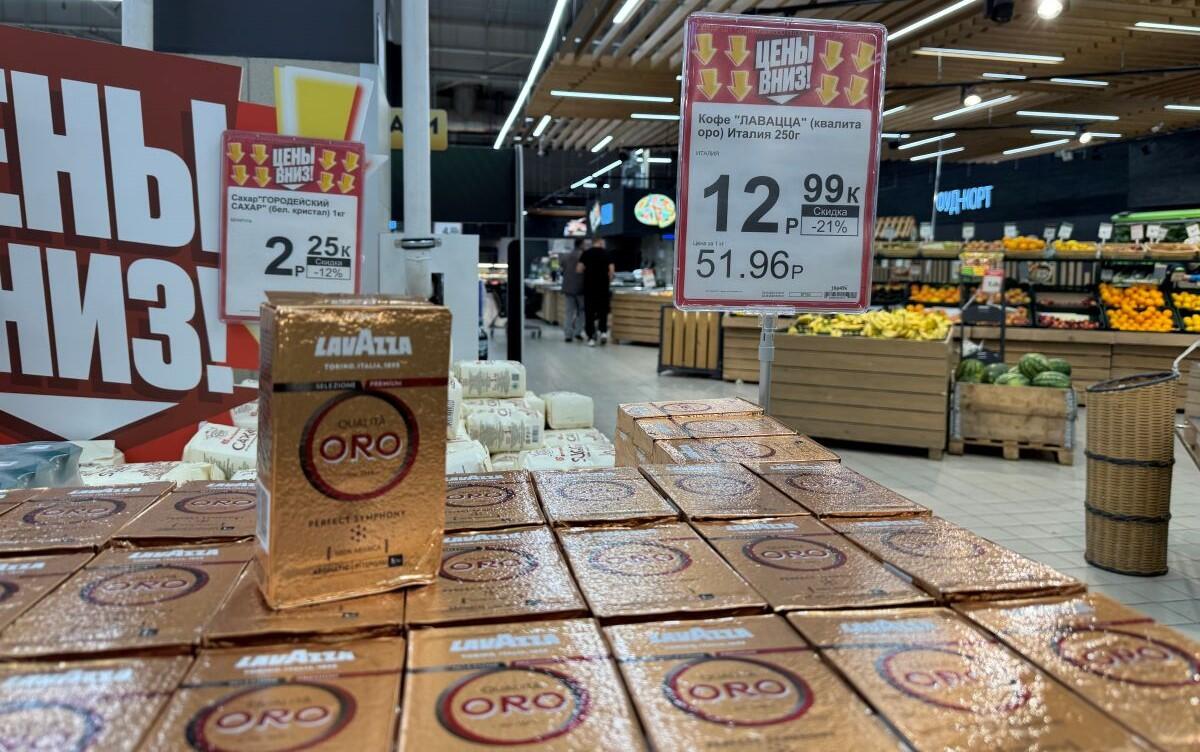 «Евроопт» встречает покупателей сообщением, что цены на итальянский Lavazza Oro сейчас снижены. И упаковка весом 250 г обойдется всего в 12,99 руб., а скидка составляет 21%. В придачу подешевел и сахар. Растворимый Jacobs Velvet из России 95 г со скидкой – 8,99, килограмм такого кофе выходит 94,63 рубля. Антикражная система защищает Dallmayr классический 250 г – 27,49. Merrild 400 г стоит 25,99 руб. В числе бюджетных кофе Barista – 6,95 рубля.