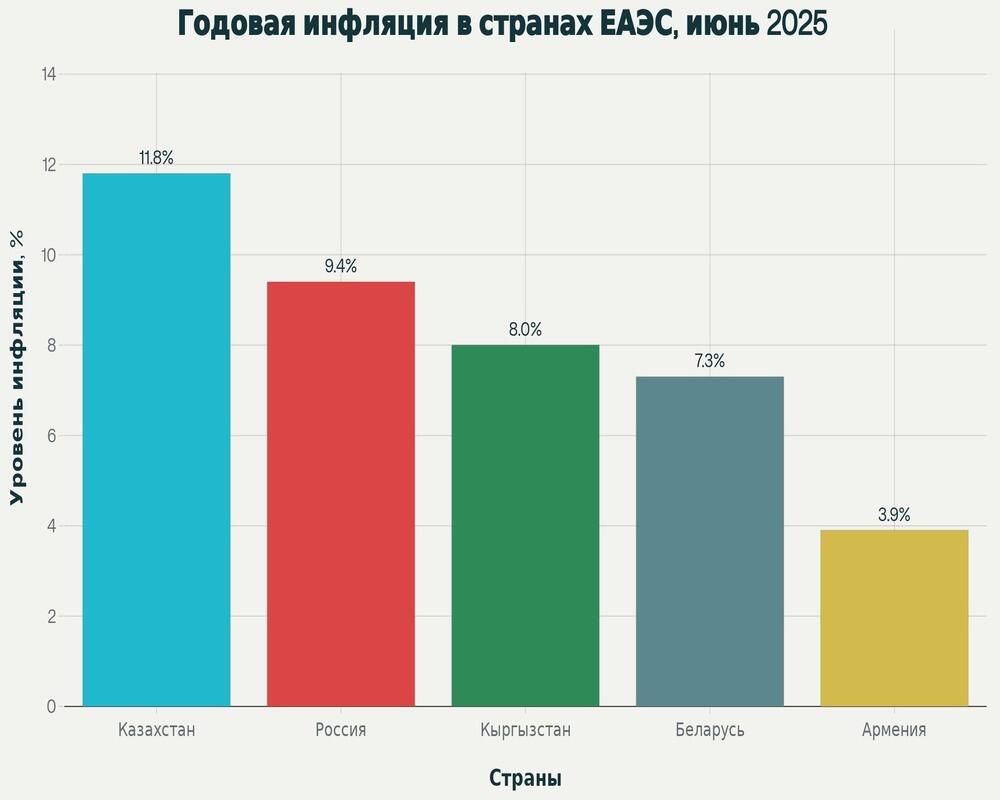 Евразийская экономическая комиссия (ЕЭК) провела мониторинг уровня инфляции в государствах Евразийского экономического союза (ЕАЭС) в июне 2025 года.