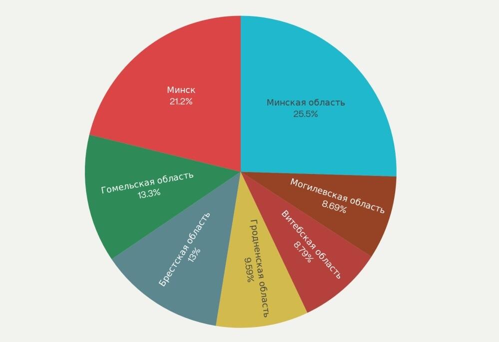 - Брестская область – 13%;