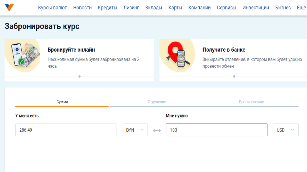 Пока такая услуга доступна в отделениях МТБанка, и чтобы ею воспользоваться, необходимо оставить заявку, указав свой номер телефона. На него придет сообщение с кодом операции – фиксацией курса, который будет актуальным для клиента в течение двух часов с момента бронирования.
