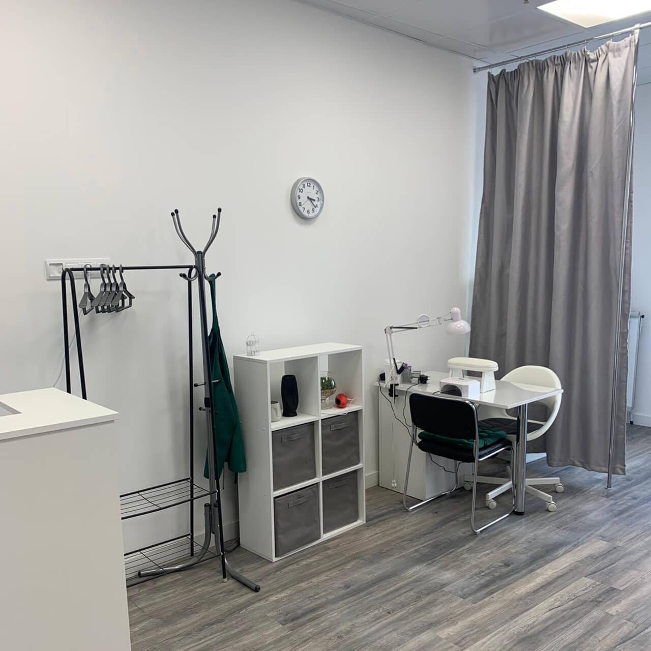 Основное помещение – площадью 36 кв. м, также предусмотрена отдельная зона ожидания и стерилизационная комната. По словам владельца, в коворкинге есть все оборудование для мастеров: 4 места для маникюра, 1 для услуг по педикюру и 1 гримерный столик. Пространство позволяет при желании добавить еще минимум 2 рабочих места. Сумма арендной платы и коммунальных платежей составляет примерно 1000 руб. в месяц.