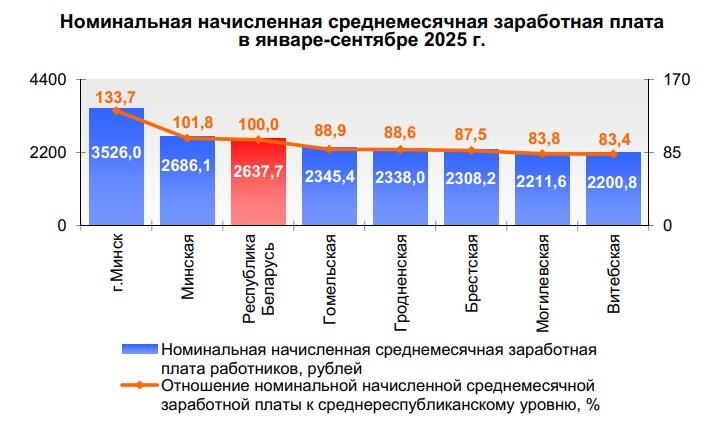 Что касается средней зарплаты за январь – сентябрь 2025 года, то она в Беларуси была на уровне 2637,7 руб.