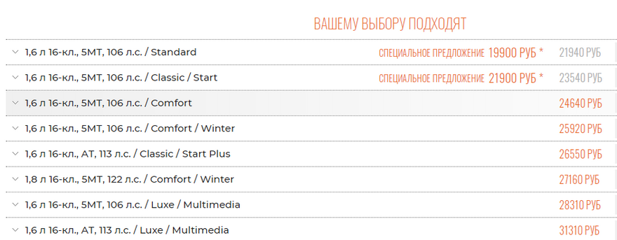 Более насыщенные комплектации дороже, но в пересчете на доллары все равно дешевле, чем в прошлом году: