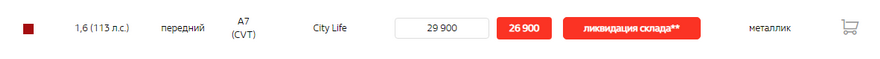 Акционные цены общем списке выглядят так: