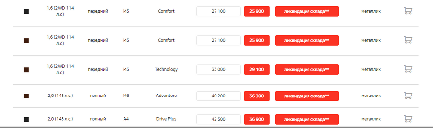Акции на Дастер еще интереснее:
