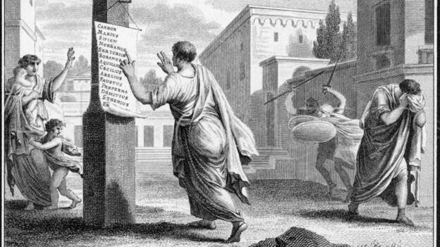 В смутные времена междоусобных конфликтов проскрипционные списки предполагали, что часть имущества попавших в немилость людей разделялась между донесшими на них людьми. Так, убийца проскрибированного, принёсший Сулле голову в качестве доказательства, получал два таланта серебра, а если убийцей был раб, то он получал свободу. Доносчики также получали подарки. Тех, кто укрывал внесённых в списки, ждала смерть. Гражданства лишались сыновья и внуки осуждённых, а имущество проскрибированных подлежало конфискации в пользу государства.