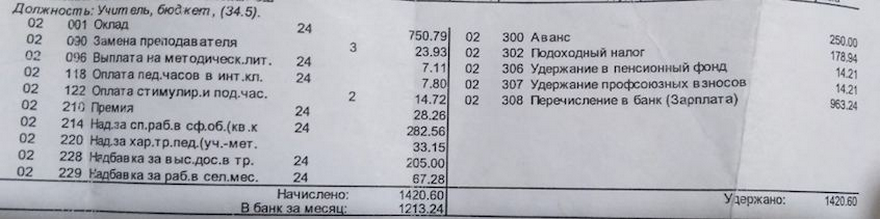 UPD. В комментариях к статье возникла дискуссия на тему достоверности предоставленных героиней статьи цифр. Чтобы развеять все сомнения, предоставляем расчетные листки педагога за три месяца.