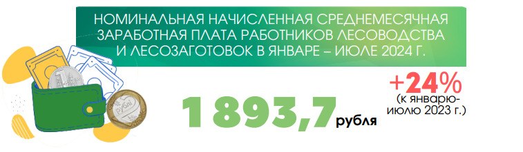 Номинальная начисленная средняя зарплата работников лесоводства и лесозаготовок в июле 2024 года составила 2050,5 руб., в январе – июле текущего года – 1893,7 руб.