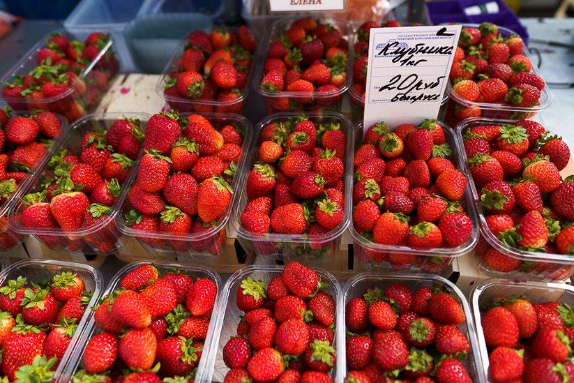 Рыночное изобилие радует глаз и пугает карман. Это раньше клубника появлялась на рынке в июне, а сейчас – «с полседьмого». У кого-то, если верить словам, она белорусская – «из Пинского района», у прочих – импортная. Цена на ягоду кусается – 15-20 рублей за кило. Что же – «не сезон».