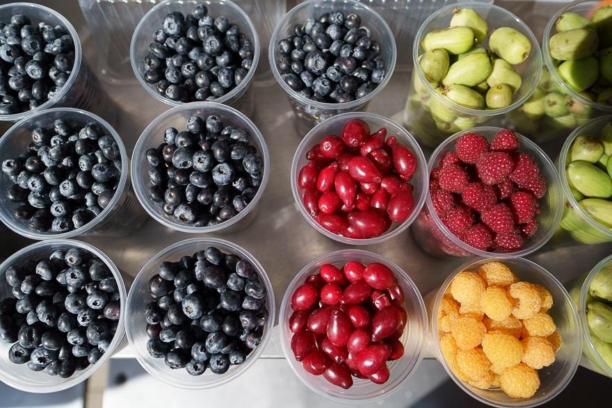 Рядом мужчина продает не только землянику (15 рублей за стакан) и чернику (5 рублей за стакан), но и кизил (те же 5 рублей), облепиху (5 рублей за 0,5 литра), и экзотическую актинидию (5 рублей). Мы привыкли к ее более крупному виду, – актинидии китайской, называемому у нас… киви.