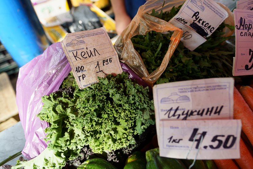 Чего не убывает с наступлением осени, а даже наоборот, так это зелени. Кроме всесезонных петрушки, укропа, шпината, сельдерея, зеленого лука (1-1,50 рубля за 100 грамм), кинзы и салата (1,5-2 рубля), базилика (2,5-3 рубля) и руколы (2-3 рубля), есть и щавель (0,9-1,5 рубля), и мята (1,5-2,5 рубля), и даже кейл (по рублю), а также тархун, розмарин и тмин (по 5 рублей за 100 гр).