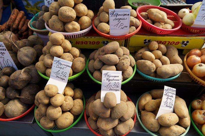 На весь рынок (если не считать «бабушкины ряды») – десятка полтора продавцов торгуют «национальным» корнеплодом. Цена от 60 копеек за кг за мелкий до 2 рублей за отборные крупные клубни с тонкой кожицей.