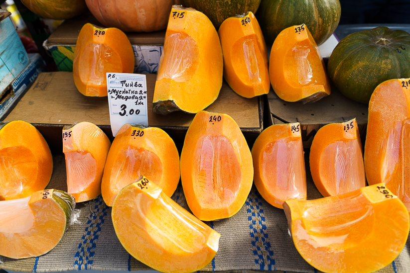 Тыква у большинства торговцев по 4 рубля, но можно точно такую же найти и по 3. Если обычный лук стоит 1,5-3 рубля, то «салатный» - 7-15 за кг. Морковка и свекла стоят одинаково – по 1,5-2,5 рубля за кило.