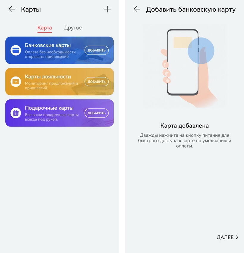 Как это работает? Приложение «Кошелек Huawei» (отображается просто как «Кошелек») уже предустановлено на смартфонах бренда. При необходимости обновите его. Процесс привязки карты простой и интуитивно понятный: заходите в приложение, принимаете лицензионное соглашение, вбиваете реквизиты, подтверждаете привязку. Для защиты платежей предложат на выбор ПИН-код или отпечаток пальца. Привязать карту можно и просто сфотографировав ее.