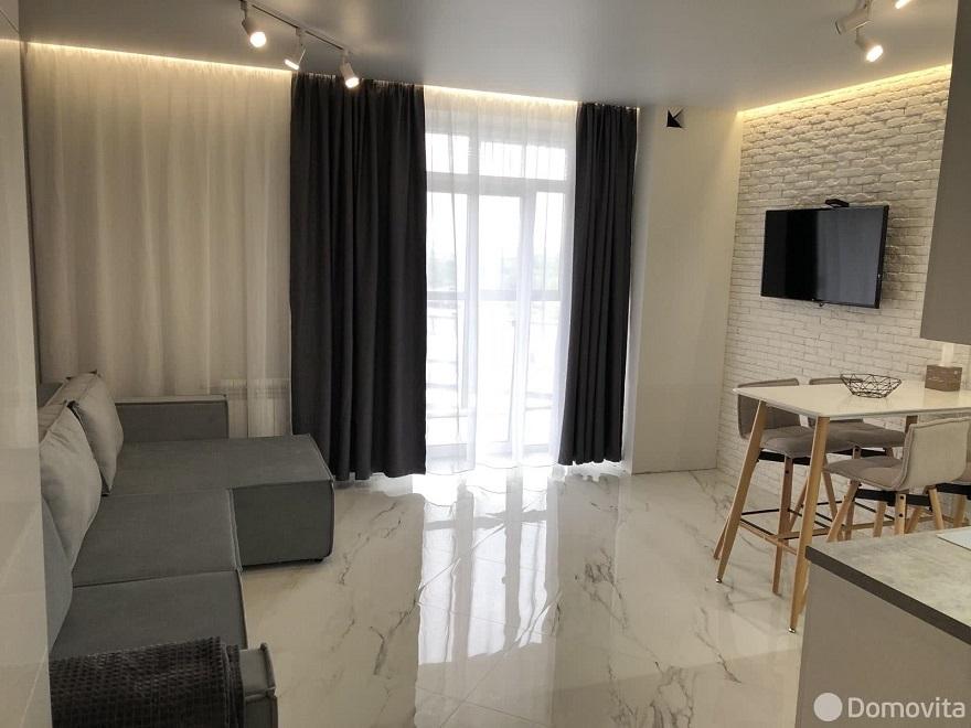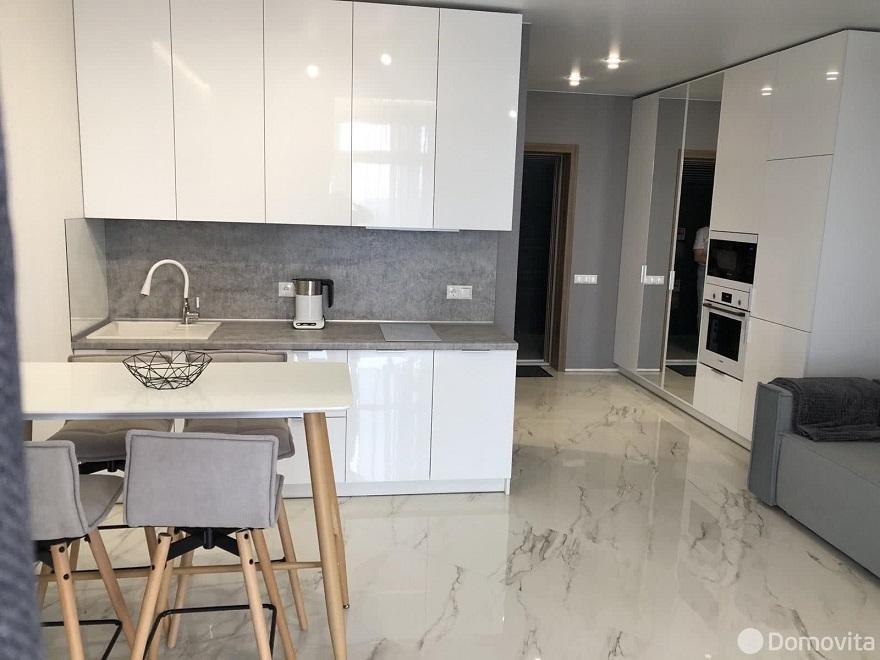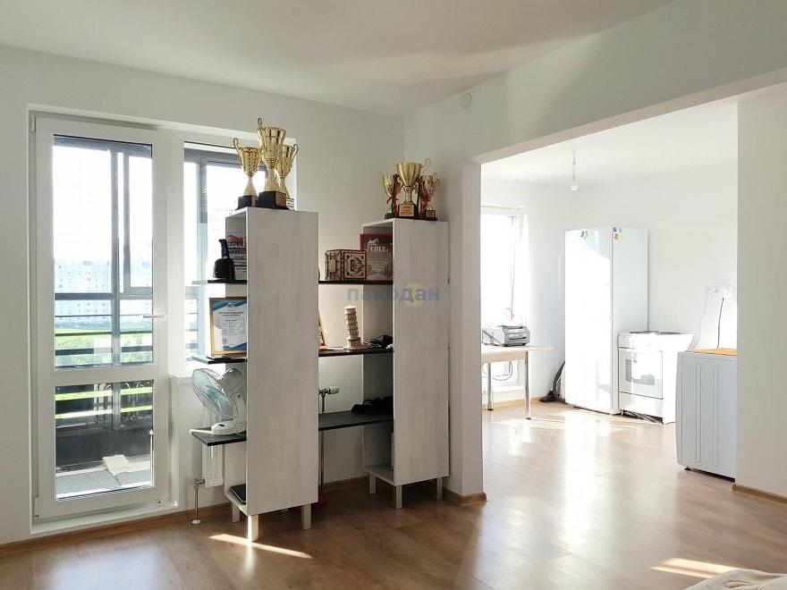 У этой квартиры одна из самых удобных планировок для студий, а продается она в малоизвестном жилом комплексе рядом со Ждановичским рынком. Сюда не так уж просто добраться и лучше иметь автомобиль, потому что к метро придется ездить на автобусе. Зато это не студия-пенал, которая больше походит на коридор, чем на жилое пространство.