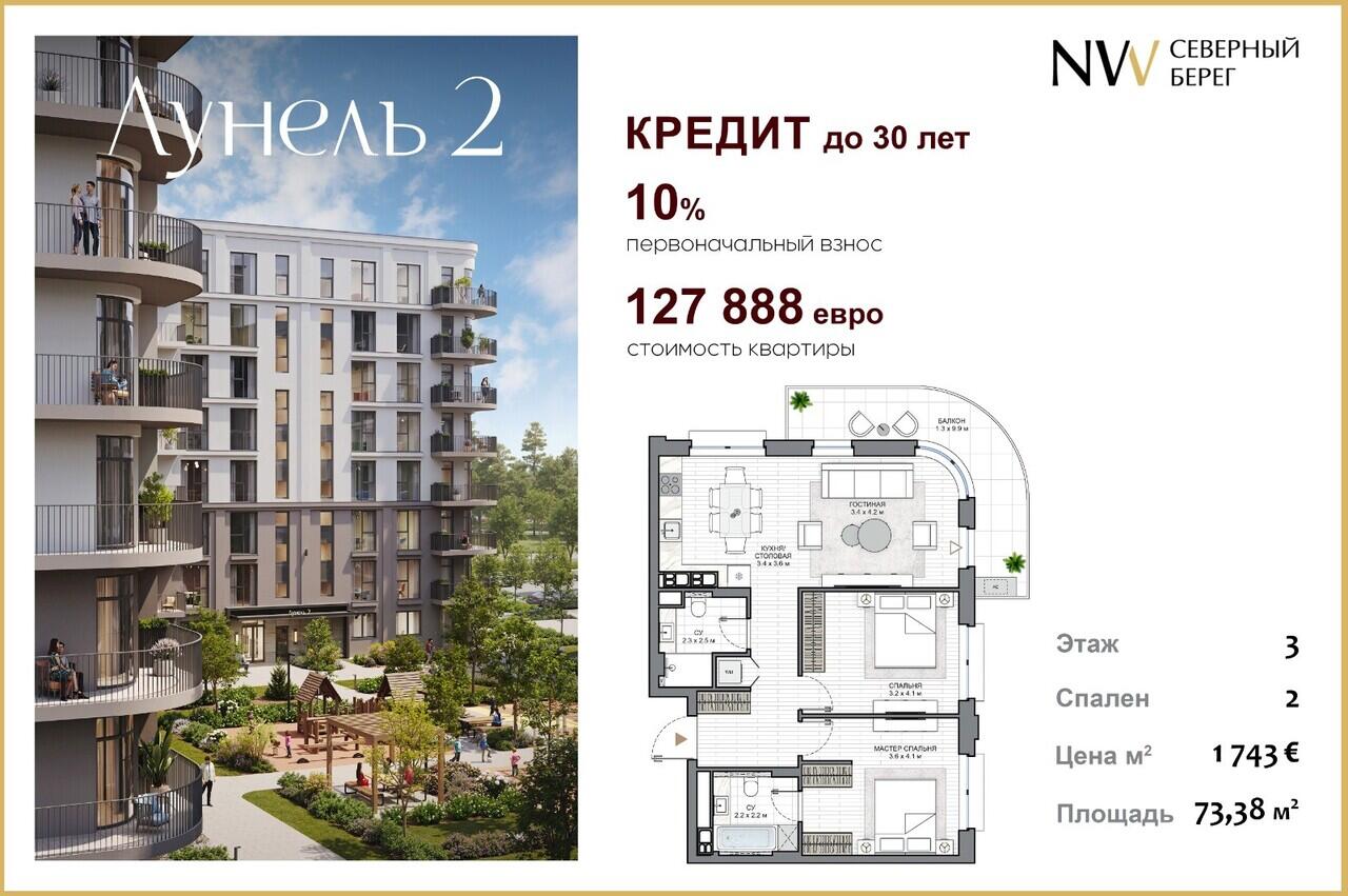 Предлагаем рассчитать, как будут выглядеть платежи, если мы решаем купить впечатляющую 2-спальную квартиру с радиусными окнами в гостиной, 3-метровыми потолками и мастер-спальней. Прямо напротив дома уже работает новый детский сад с бассейном и строится современная школа.